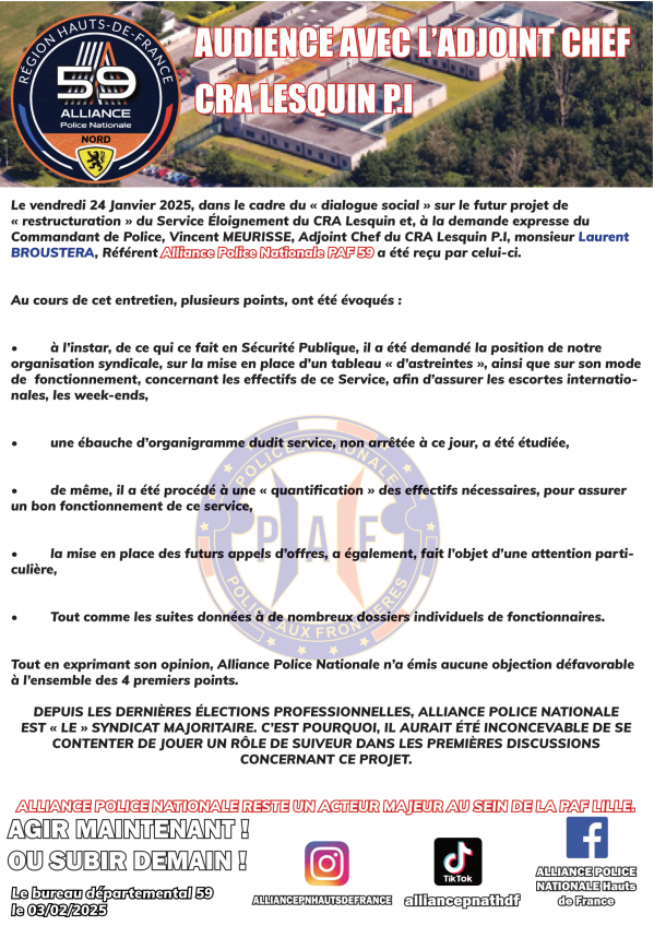 BROUSTERA, Référent Alliance Police Nationale PAF 59 a été reçu...